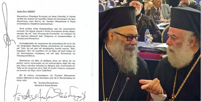 رسالة صاحب الغبطة بابا وبطريرك الإسكندرية وسائر أفريقيا ثيودروس الثاني، إلى صاحب الغبطة بطريرك أنطاكية وسائر المشرق يوحنا العاشر.