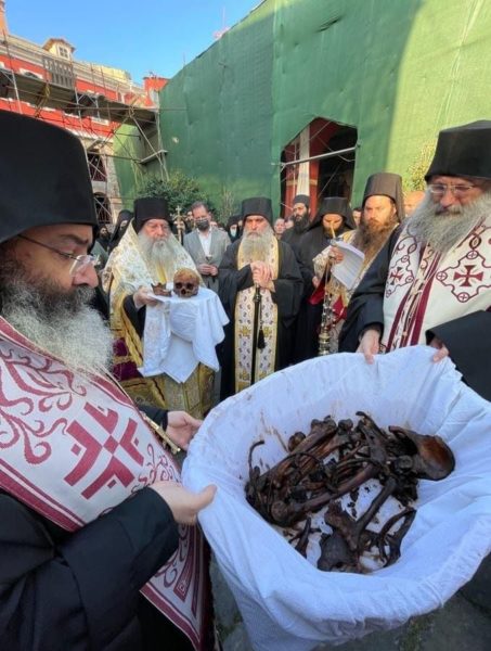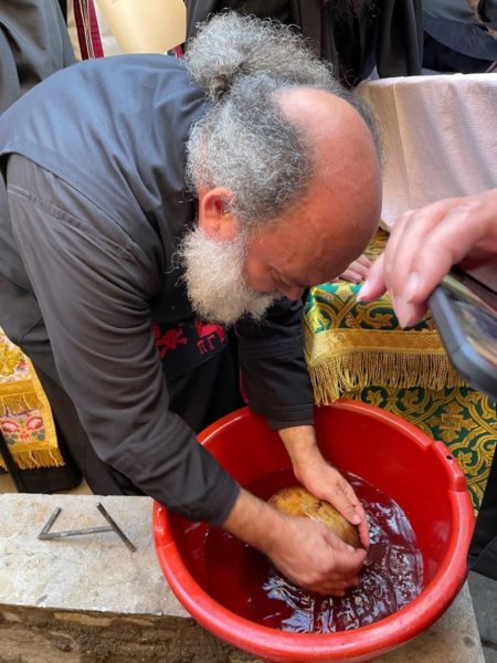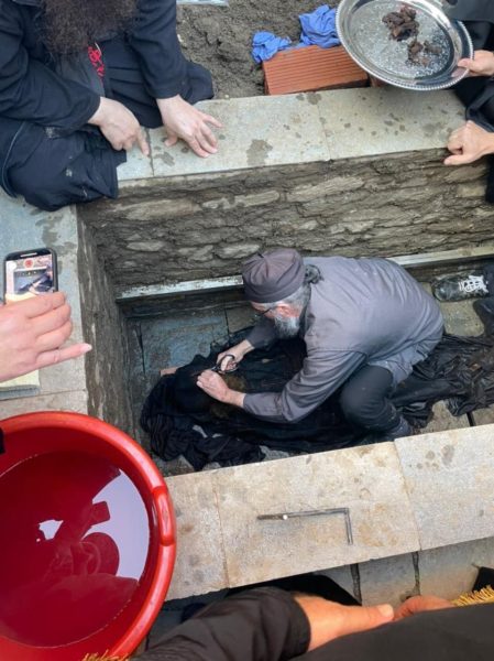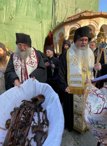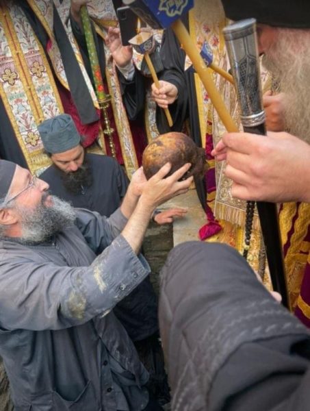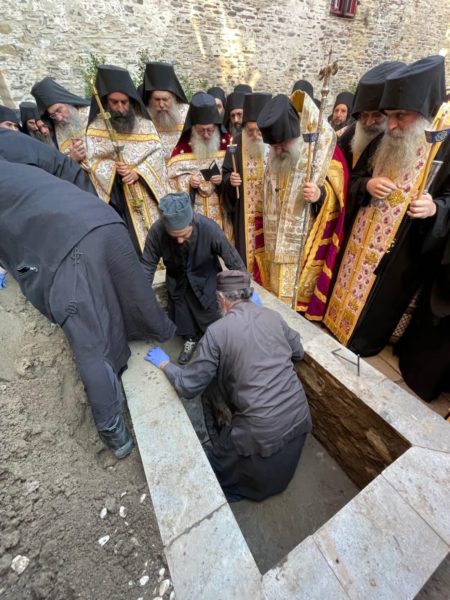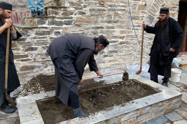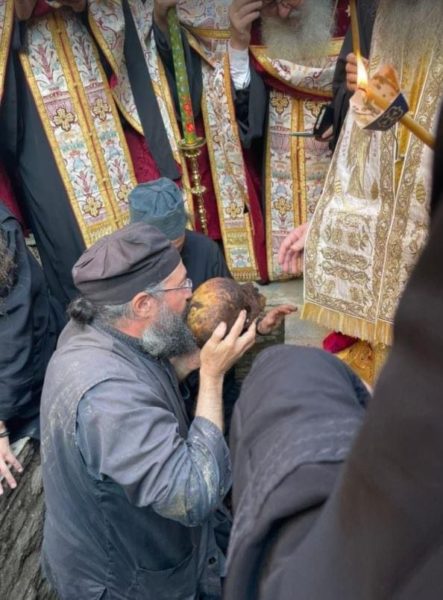 فبحسب التّقليد المتَّبَع، يُفتح القبر بعد فتره زمنيَّه معيَّنه واذا تبيّن وجود ماده شَمعيَّة على “الكارا” (الرأس)، فإنّما تدل على حياه النّسك وقداسة الرّاهب في حياته على هذه الأرض. لذا يوضع الرأس في صندوق يطلق عليه “لارنكا” للتَّبرُّك به والتّشَبُّه بحياته التي أهَّلَته للالتقاء بالرَّبِّ يسوع المسيح والتّحليق بسماء القدّيسين ومصافِّ الابرار.