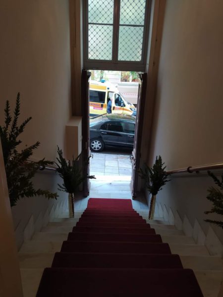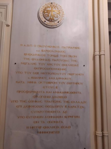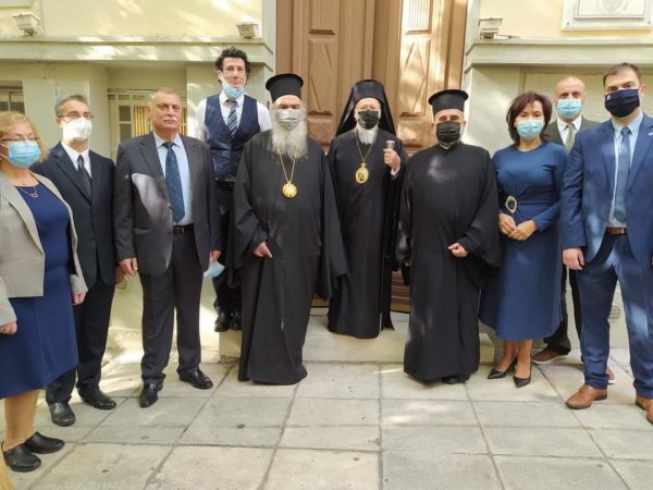 صاحب السيادة المطران أمفيلوتشيوس المسؤول عن ممثلية البطريركية المسكونية في اثينا ومترويوليت (ادرنة في تركيا) ولفيف من الاباء الكهنة والشمامسة وعدد من ابناء جالية القسطنطينية وتركيا الروم الارثوذكس المقيمين في اثينا
