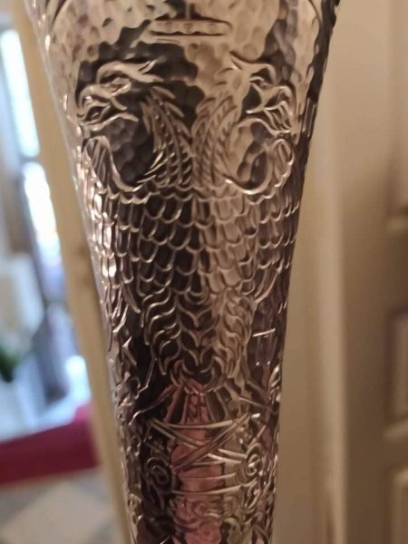في الختام قدم صاحب السيادة المتروبوليت أمفيلوتشيوس لصاحب القداسة عصا رعاية جميلة نحت عليها شعار البطريركية المسكونية ورقم30 ذكرى انتخاب وجلوس البطريرك برثلماوس على العرش المسكوني