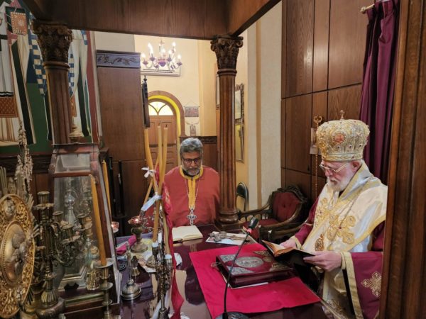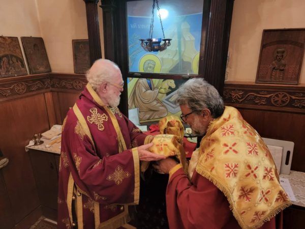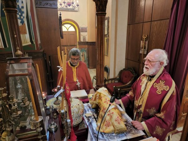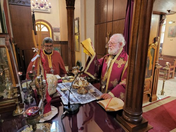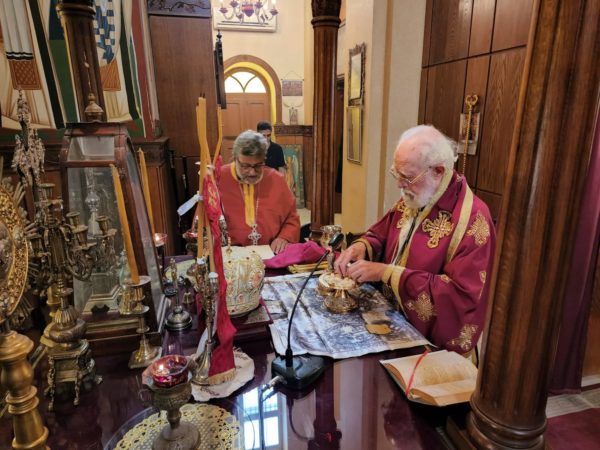 رأس القداس الإلهي المتروبوليت نقولا بمعاونة الأرشمندريت نقولا فانوس راعي الكنيسة.