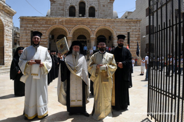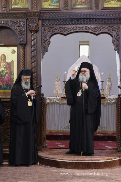 كان في استقباله على مدخل كاتدرائية القديس جاورجيوس صاحب السيادة المتروبوليت نيقولاوس (بعلبكي) ولفيف من الكهنة والشمامسة بالإضافة الى عدد من المؤمنين.