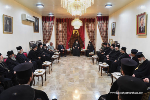 بعد صلاة الشكر توجه غبطته الى دار المطرانية حيث حضر أمين فرع الحزب في حماه السيد محمد أشرف باشوري ومحافظ مدينة حماه المهندس محمد طارق ريشاتي وعضو مجلس الشعب السيد ماهر قاورما والآباء الكهنة بالاضافة الى عدد من الرسميين والعسكريين وبعض أبناء الرعية.