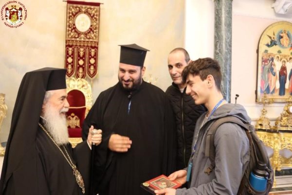 إستقبل غبطة البطريرك كيريوس كيريوس ثيوفليوس الثالث يوم السبت الموافق 6 نيسان 2024 (24 آذار شرقي) مجموعة تضم 400 فرداً من أبناء رعية البطريركية الأورثوذكسية من بلدة كفرياسيف من الجليل مع قدس الأب فرح فرح راعي الكنيسة.