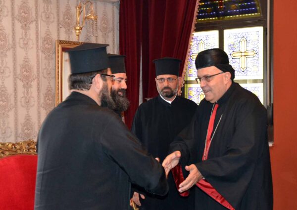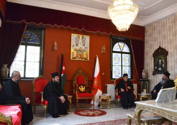 وكان في استقباله الأرشمندريت فينيذكتوس كيّال بالنيابة عن صاحب السيادة المطران خرستوفوروس وعدد من قدس الآباء الأجلاء، حيث دار الحديث حول الأمور الكنيسة والهموم المشتركة لأبناء الرعية، وعن الوجود المسيحي في الشرق الأوسط وأهمية العمل على تثبيت أبنائنا في المنطقة.