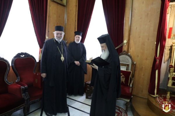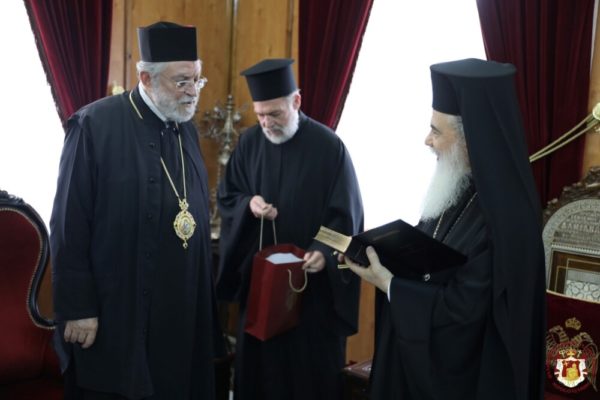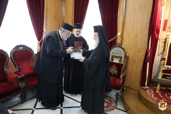 ستقبل غبطة البطريرك كيريوس كيريوس ثيوفليوس الثالث يوم الإثنين الموافق 16 أيار 2022 (3 أيار شرقي) سيادة متروبوليت هيليوبوليس كيريوس ثيوذوروس من بطريركية الإسكندرية الذي حضر كمرشد روحي لمجموعة من الحجاج الاورثوذكس.