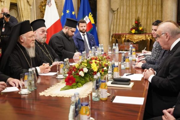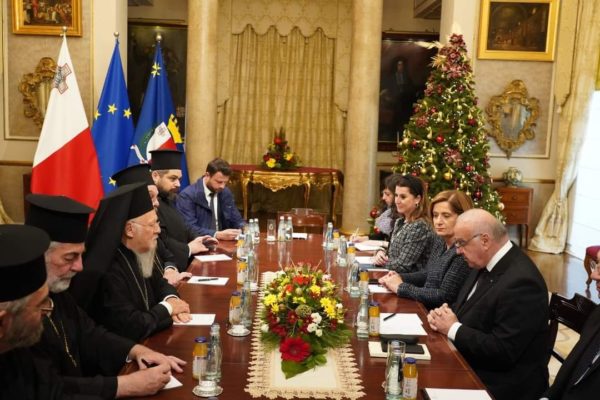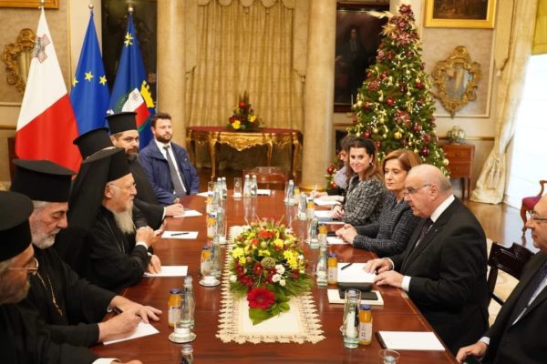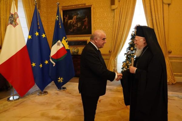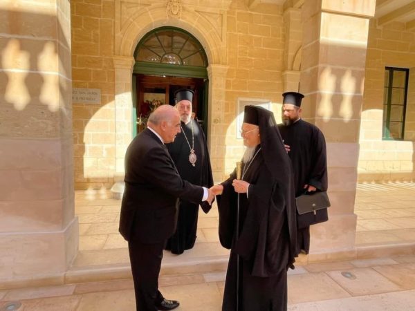 التقى ابينا صاحب القداسة رئيس اساقفة القسطنطينية روما الجديدة والبطريرك المسكوني برثلماوس الاول فخامة رئيس جمهورية مالطا جورج ويليام فيلا في قصر القديس أنطونيوس بمدينة أتارد