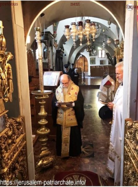 وقرأ أيضاً هذه الصلاة خلال خدمة القداس الإلهي المسائية في القبر المقدس القابل الحياة سيادة رئيس أساقفة هيرابوليس كيريوس إيسيذوروس.