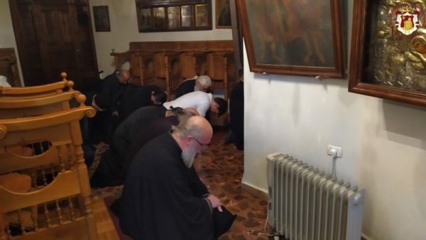 بعد الصلاة قام غبطة البطريرك بالركوع وقراءة صلاة الغفران مع الأساقفة والآباء والرهبان ثم بطلب الصفح من بعضهم البعض بتقبيل الأيادي تواضعاً مُهيئين النفوس لبدء الصوم المقدس وإستقبال آلام المخلص الرب يسوع المسيح وقيامته المجيدة.