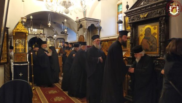 تقدم غبطة البطريرك كيريوس كيريوس ثيوفيلوس الثالث يوم الأحد الموافق 26 شباط 2023 (13 شباط شرقي) خدمة صلاة النوم الصغرى المسائية في كنيسة القديسين قسطنطين وهيلانة في البطريركية, وقرأ غبطته صلاة الغفران كما هي العادة يوم أحد مرفع الجبن قبل بدء الصوم الأربعيني المقدس.