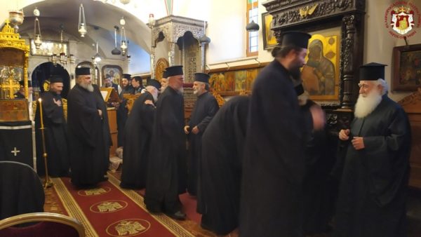 بعد الصلاة قام سيادة المطران بقراءة صلاة الغفران مع الآباء وبطلب الصفح من بعضهم البعض بتقبيل الأيادي تواضعاً وتبعهم المصلين المؤمنين.