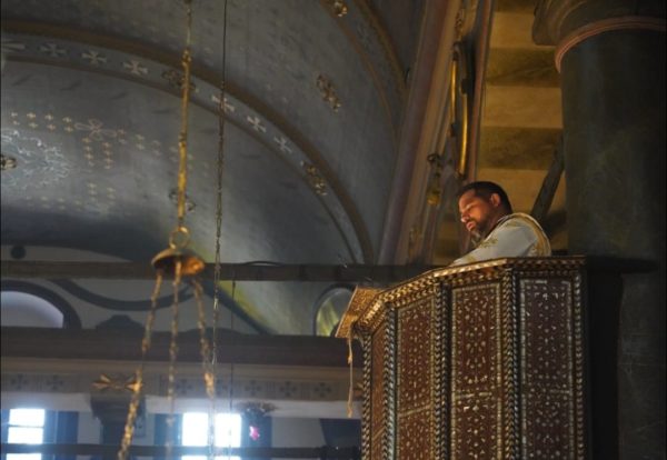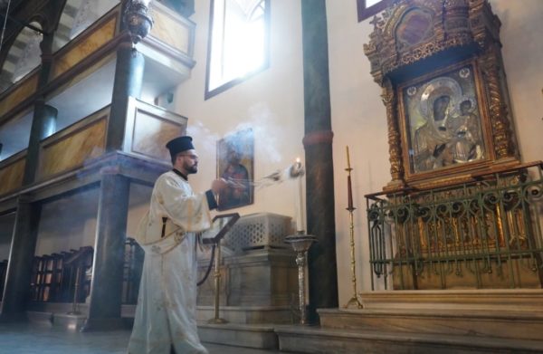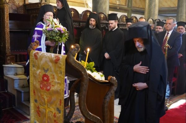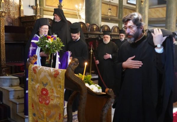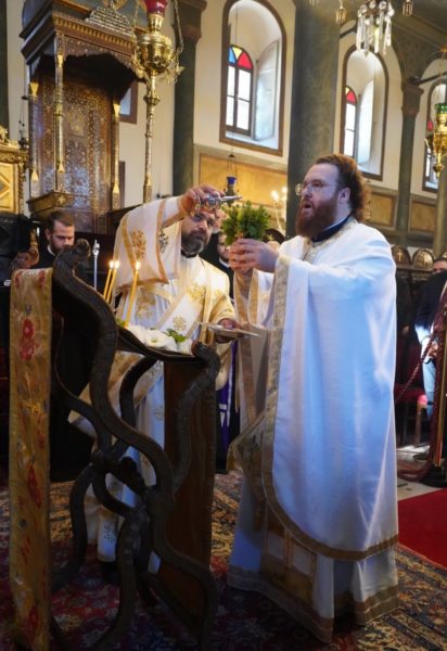 بعد مراسم رفع الصليب المقدس ، وزع قداسته ، حسب التقليد ، الزهور والريحان على رؤساء الكهنة ، والاكليروس ، والمسؤولين الذين أتوا للعبادة ، وقنصل اليونان . السيد ستافروس كريستودوليديس.