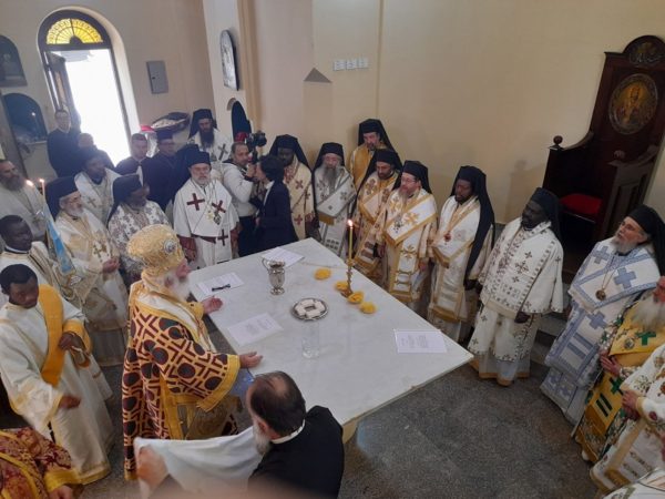 أولاً: في وجود بطريرك مع مطارنة وأساقفة وكهنة وشمامسة: