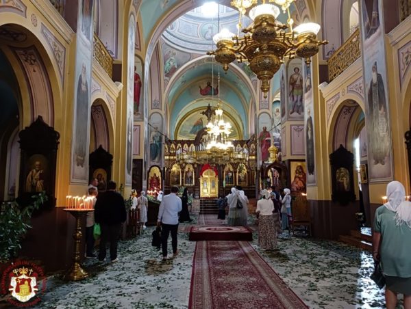 ترأس خدمة القداس الإلهي غبطة البطريرك كيريوس كيريوس ثيوفيلوس الثالث يشاركه أصحاب السيادة متروبوليت كابيتولياذا كيريوس إيسيخيوس, رئيس أساقفة قسطنطيني كيريوس أريسترخوس, سيادة متروبوليت إيلينوبوليس كيريوس يواكيم, قدس الأرشمندريت نيكتاريوس, قدس الأرشمندريت ذوميتيانوس والمتقدم في الشمامسة الأب ماركوس من أخوية القبر المقدس, رئيس البعثة الروحية الروسية قدس الأرشمندريت أليكساندروس مع آباء البعثة الروسية, ممثل كنيسة مولدوفا الروسية صاحب السيادة رئيس أساقفة أنغيني ونسبورن بطرس, وآباء من دير جبل جورنسكي وآباء الرعية الأورثوذكسية التابعة للبطريركية. حضر خدمة القداس الإلهي عدد كبير من أبناء الرعية الروسية وأبناء رعية البطريركية.