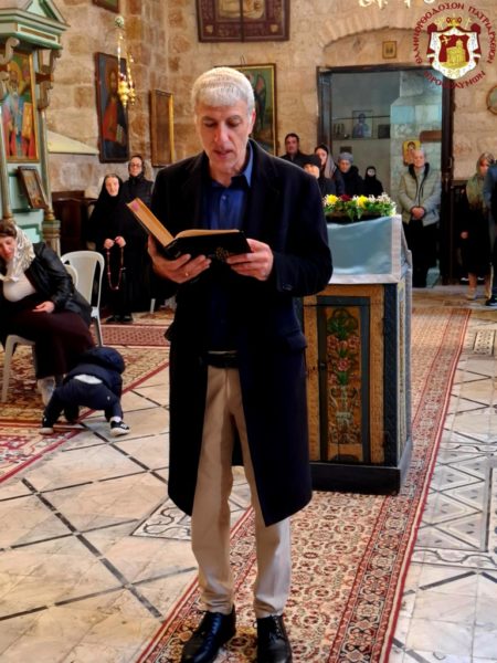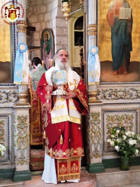 خلال القداس حضر الى الدير غبطة البطريرك كيريوس كيريوس ثيوفيلوس الثالث للتبارك وتهنئة المصلين يرافقه عدد من الآباء.