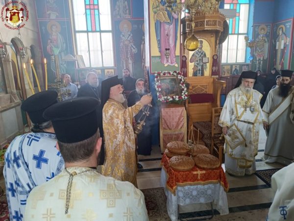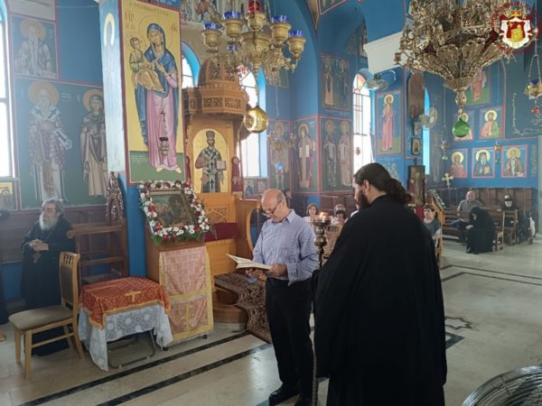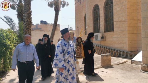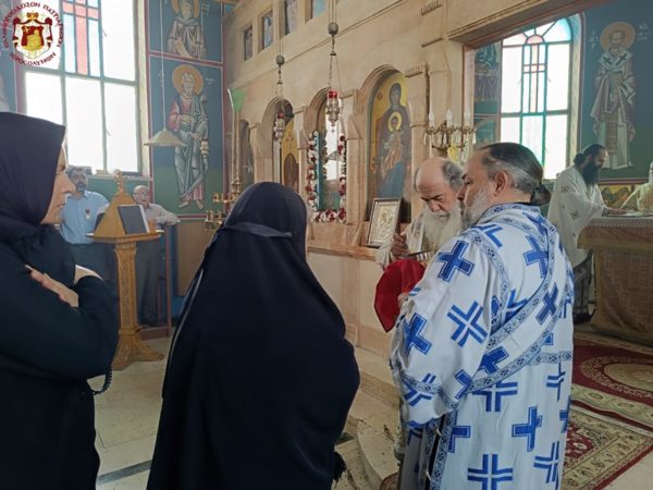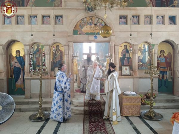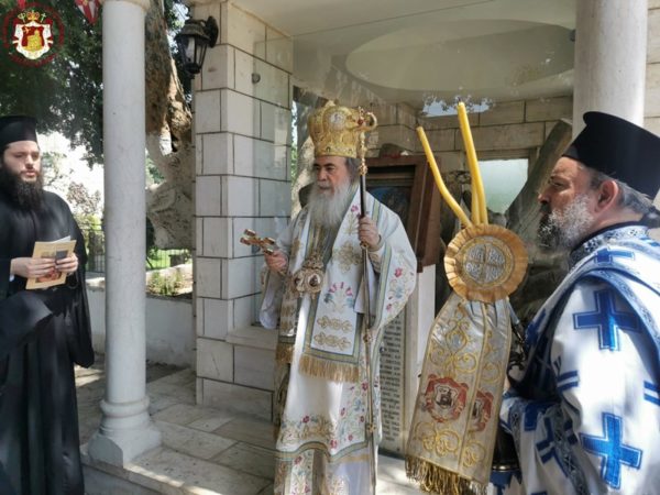 في الدير المكرس على إسم النبي أليشع في أريحا ترأس خدمة القداس الإلهي صاحب الغبطة كيريوس كيريوس ثيوفيلوس الثالث يشاركه سيادة متروبوليت كابيتوليذا كيريوس إيسيخيوس, سيادة رئيس أساقفة قسطنطيني كيريوس أريسترخوس, المتقدم قدس الأرشمندريت أليكسيوس, قدس الأرشمندريت سلوانوس, قدس الأرشمندريت كيرياكوس, قدس الأب عيسى مصلح, المتقدم في الشمامسة الأب ماركوس والشماس المتوحد الأب ذوسيذيوس. قام بالترتيل الأب سيميون باللغة اليونانية وجوقة رعية أريحا باللغة العربية. وحضر القداس مؤمنون من أريحا والمنطقة وحجاج من خارج البلاد.