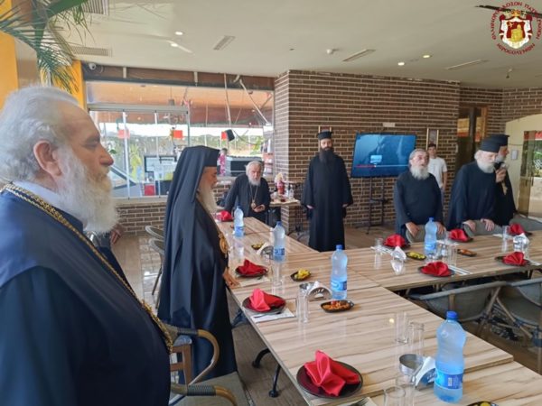 بعد أعد أعد مشرف الدير الأرشمندريت بارثينيوس ضيافة قي قاعة الدير وظهراً أعد الرئيس الروحي لدير القديس جيراسيموس قدس الأرشمندريت خريسوستوموس مادبة غذاء في أحد مطاعم المدينة.