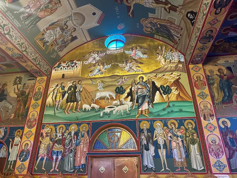 صباح يوم الأحد تم الاحتفال بالقداس الإلهي صباح في كنيسة والدة الإله التي بناها الرئيس الروحي لدير القديس سابا المغبوط الأرشمندريت سيرافيم، حيث ترأس خدمة القداس الإلهي سيادة رئيس أساقفة مادبا كيريوس أريستوفولوس، يشاركه الرئيس الروحي الحالي لدير القديس سابا قدس الأرشمندريت إفذوكيموس، وكهنة الرعية الأب جوارجيوس والأب يوحنا وغيرهم. وحضر القداس الإلهي أبناء الرعية الأورثوذكسية في بيت ساحور والبلدان المجاورة في بيت لحم.