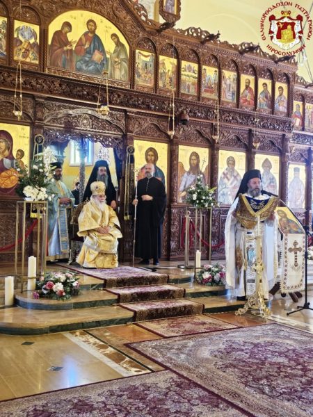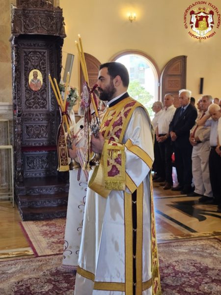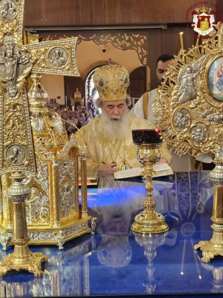 ترأس خدمة القداس الإلهي الإحتفالي صاحب الغبطة كيريوس كيريوس ثيوفيلوس الثالث الذي إستُقبل مع الوفد البطريركي من قبل فرق الكشافة ووجهاء وأبناء الرعية, يشاركه سيادة رئيس أساقفة قسطنطيني كيريوس أريسترخوس, سيادة متروبوليت بتوليمائيس عكا كيريوس مكاريوس, سيادة رئيس أساقفة بيلا كيريوس فيلومينوس, كهنة الرعايا الأورثوذكسية في الجليل, ومسؤول الكنيسة قدس الأرشمندريت أندرياس, بحضور عدد كبير من أبناء الرعية في سخنين ومن البلدان المجاورة.