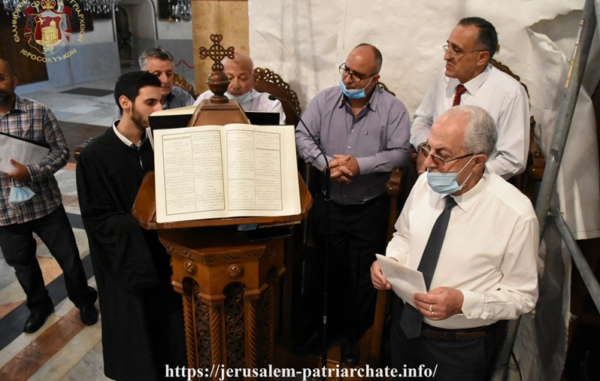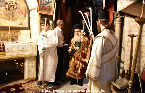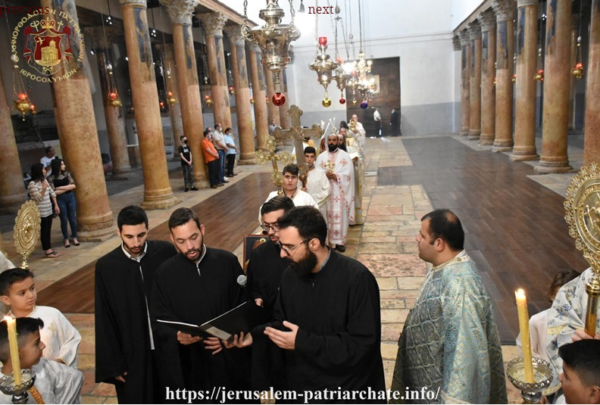 إن كنيسة أوروشليم المقدسة تُعيّد اليوم بشكلٍ خاص لتذكار القديسين الذين لمعوا في فلسطين. فقد اجتمعنا والتأمنا نحن اليوم ههنا بنعمة الروح القدس في هذا المكان والموضع المقدس في المغار القابلة الإله أي كنيسة ميلاد إلهنا ومخلصنا المسيح لكي نقدم الشكر وذبيحة التسبيح غير الدموية لإلهنا الواحد المثلث الأقانيم ضمن الإجراءات الوقائية لجائحة الكورونا.