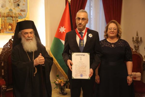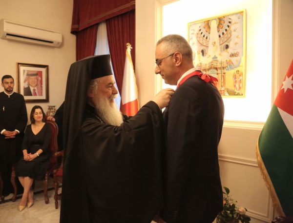 مَنح غبطة البَطريرك ثيوفيلوس الثالث بقرارٍ مِن المَجمع المُقدس، سَعادة السّيد ميخاليس إيوانو وسام القبر المُقدس يَوم أمس في دارِ المُطرانية في عمّان تقديراً لجهودهِ الكَبيرة خِلال الأربعة سَنوات الماضية في إثراء العلاقاتِ الدّبلوماسية بينَ الأردن وقُبرص والإجتهادِ في دَعمِ الكَنيسة الأرثوذكسية في المَملكة وتمكين العَديد مِن روابط الأخوة والصّداقة التي تُرجمت بأحلى الصّور الإجتماعية.