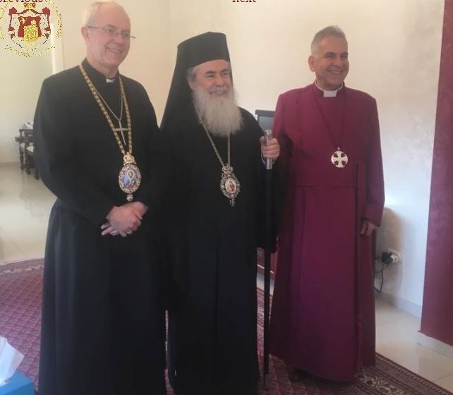 رئيس أساقفة كانتربري قال إنه لنعمة بالنسبة له أن يزور دول الشرق الأوسط مرة أخرى, وأشاد بغبطة البطريرك ثيوفيلوس الثالث الذي كما أضاف ما يميزه هي صفة الشجاعة وحكمته في تسوية الخلافات التي باتت واضحة من خلال القرار التاريخي بإغلاق كنيسة القيامة ثم فتحها مرة أخرى بعد تدخل رئيس وزراء إسرائيل السيد بنيامين نتنياهو الذي أمر بتعليق الإجراءات الضريبية المفروضة من قبل بلدية القدس ضد الكنائس . وعلاوة على ذلك ، قال إن العلاقة بين البطريركية الأورشليمية والكنيسة الأنجليكانية قد أصبحت أقوى في عهد غبطة البطريرك ثيوفيلوس الثالث.