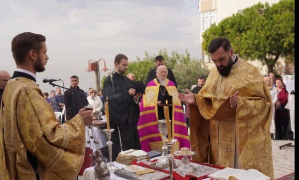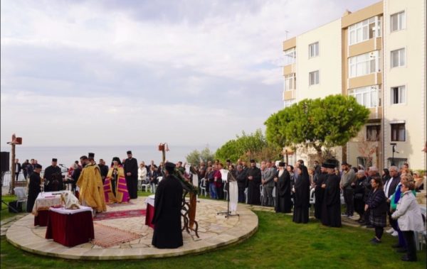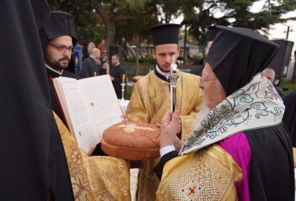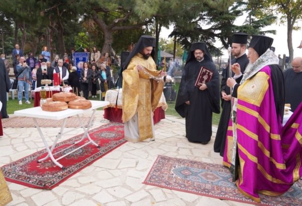 بمناسبة الاحتفال القادم بذكراه تراس صاحب القداسة البطريرك المسكوني برثلماوس الاول القداس الالهي في نهاية القداس اقام تريصاجيون لراحة كل من رقد من ابناء هذه المدينة والمنطقة ، والذين استشهدوا”.