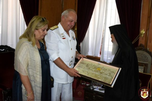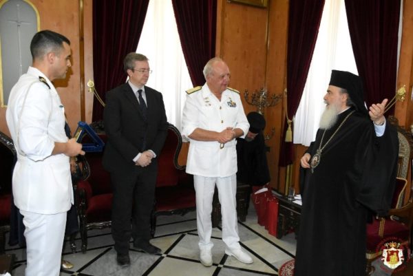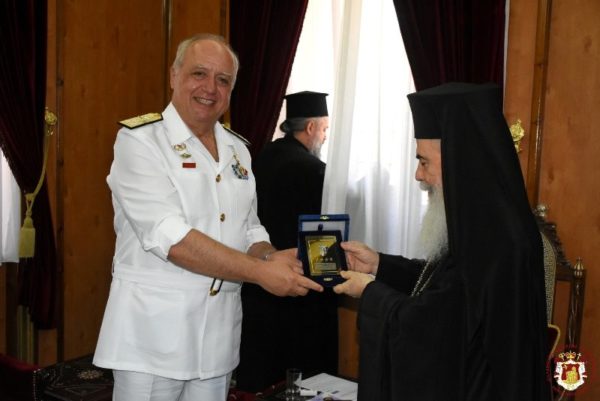 في نهاية الزيارة قدم قائد البحرية اليونانية لصاحب الغبطة شعار النبالة ونموذج السفينة الثلاثية ، بينما قدم له الأخير أيقونة فضية للمدينة المقدسة أورشليم.