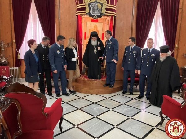 غبطة البطريرك تمنى أن تضلل القوة الإلهية سلاح الجو اليوناني للدفاع عن الوطن، وقدّم للوفد الصليب المقدس وأيقونة والدة الإله الأورشليمية. بدوره قدّم السيد بورولياس لصاحب الغبطة شعارًا تذكاريًا لسلاح الجو اليوناني.