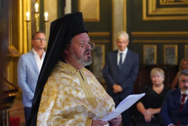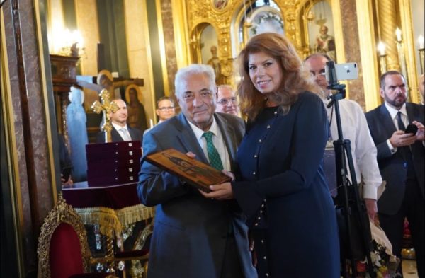 خاطب قداسته كاهن الكنيسة سيادة كاهن الجالية البلغارية الارشمندربت شارالامبوس نيتشيف ، المحترم و نائبة رئيس بلغاريا السيدة إليانا يوتوفا ، وكذلك رئيس الجمعية السيد فاسيليوس ليازي.