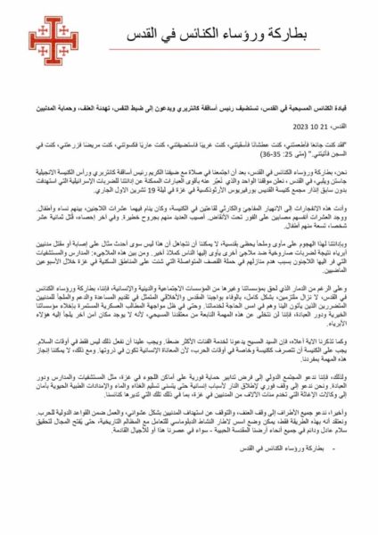 قيادة الكنائس المسيحية في القدس تستضيف رئيس أساقفة كانتربري ويدعون إلى ضبط النفس وتهدئة العنف وحماية
