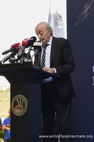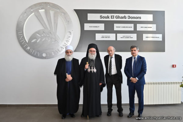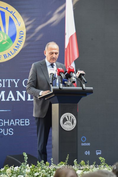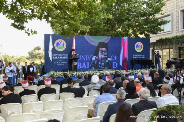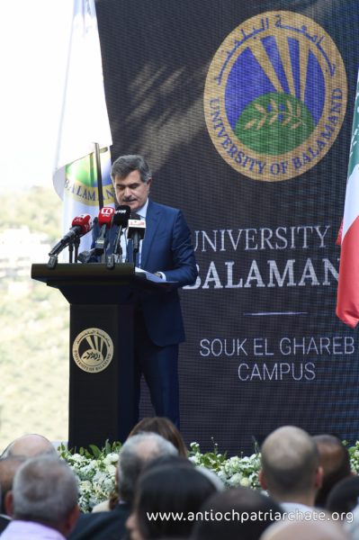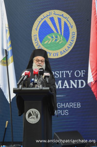 جامعة البلمند سفيرتنا إلى قلب إنسانٍ مشرقي أحببناه من كل الأطياف. جامعة البلمند سفيرتنا إلى الشرق الذي نستمد كينونتنا من اسمه. هذه الجامعة سفيرتنا إلى لبنان وإلى اللبنانيين من كل الأطياف. أردناها في البلمند رابضةً إلى جانب الدير الخالد وأردناها في بيروت وفي عكار وأردناها ههنا في ظلال أرز الشوف. أردناها حاملةً لإرث كنيسةٍ وجماعةٍ مسيحيةٍ، متأصلةٍ في الماضي ومستشرفةٍ للمستقبل. أردناها متسلحةً بلغة حضارة اليوم وناهلةً من علوم الأقدمين. أردناها عيناً على الحضارة العربية والأوروبية ومجساً لسائر العلوم التطبيقية والنظرية. أردناها ناشرةً أجنحة احتضانها للجميع ومن كل الأطياف. وفي هذا المجال، لاقيتمونا، معالي الوزير. قدمتم الأرض وأردتم أن تكون جامعةُ البلمند حاضرةً ههنا في سوق الغرب. نذكركم بالخير ونذكر أباكم المرحوم كمال جنبلاط وندعو بالخير لتيمور. ونذكر أيضاً الابن الروحي أنيس نصار الذي كانت له مساهمته القيمة وسعيهُ المشكور لكي يخرج هذا الصرح من الحلم إلى الواقع. ولإخوتنا في طائفة الموحدين الدروز، أبناء بني معروف الأكارمِ أطيب تحية في أطيب أرض وأطيب لقيا. أذكر بالخير سماحة شيخ العقل سامي أبي المنى الذي تربطنا به أطيب علاقة وأذكر بالخير أيضاً يوم زرنا خلوات البياضة وتلمّسنا كيف يناجي الإنسان ربه في ساعة صفاءٍ وكيف يجد في أخيه الإنسانِ خير محكٍّ لمصداقية التماسه رحماتِ ومرضاةَ الله القدوس.