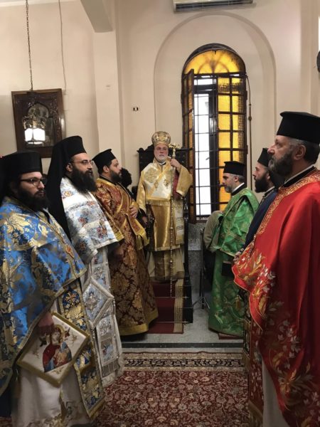 بمعاونة كل من الأرشمندريت الأب داماسكينوس الاذرعى رئيس دير مار جرجس بمصر القديمة وراعي الكنيسة المتقدم في الكهنة الأب بافلوس نعيم ولفيف من كهنة القاهرة.