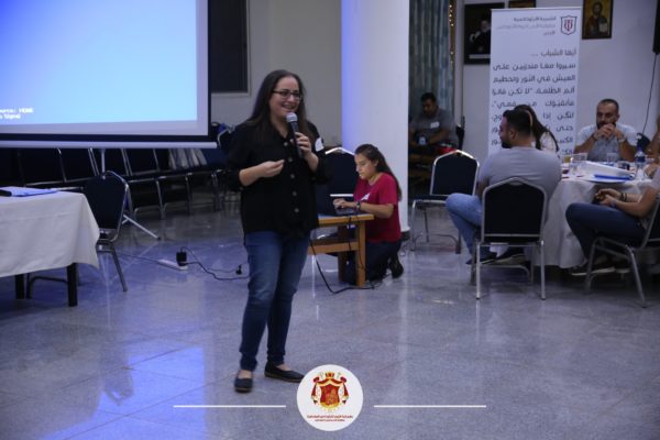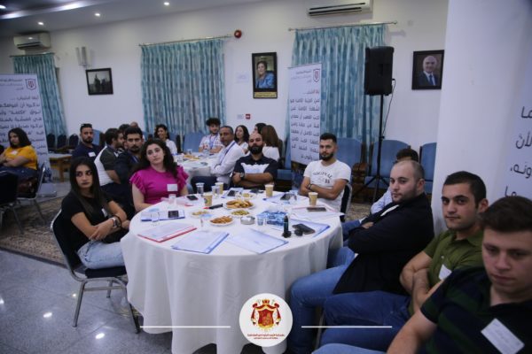 ثمّ عَقَدَ الأستاذ علاء أبو خضر ورشةً تدريبيَّةً تتعلُّقُ بتنميةِ مهاراتِ تشكيلِ فِرَقِ العملِ لدى الشّبيبةِ والعملِ بروحِ الفريقِ الواحد.