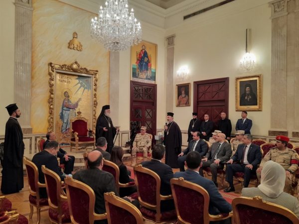 في كلمته شكر البابا ثيودروس محافظ الإسكندرية والقائد العسكري حضورهم للتهنئة، مؤكدا العلاقات الطيبة المستمرة للبطريركية مع سلطات الدولة. وأشار باستفاضة إلى العمل متعدد الأوجه لبطريركية الإسكندرية في أفريقيا ، وكذلك إلى زياراته الرسمية حول العالم والتي خلالها كان سفيرًا غير رسميًا لمصر. كما أشار إلى العلاقات المتناغمة والمثمرة ذات الأهمية الاستراتيجية بين دول شرق البحر المتوسط ، ولا سيما بين مصر واليونان وقبرص.