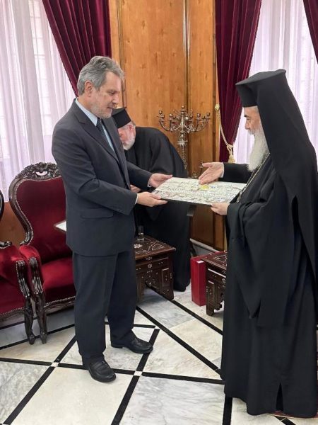 زار مقر البطريركية الأورشليمية يوم الثلاثاء الموافق 15 تشرين ثاني 2022 مديرعام وزارة الخارجية اليونانية السيد ثراسيفولوس لالاكوس، يرافقه سفير اليونان في إسرائيل السيد كيرياكوس لوكاكيس، معاونه السيد كونستانداراس، القنصل العام لليونان في القدس السيد إيفانجيلوس فليوراس، القنصل السيدة كريستينا زخاريوذاكي، والقنصل السابق السيدة كاترينا تزيما.