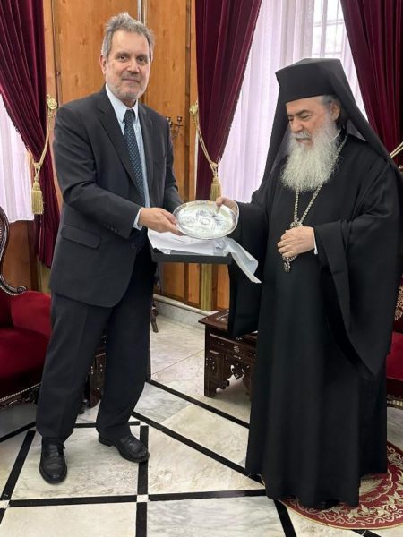 زار مقر البطريركية الأورشليمية يوم الثلاثاء الموافق 15 تشرين ثاني 2022 مديرعام وزارة الخارجية اليونانية السيد ثراسيفولوس لالاكوس، يرافقه سفير اليونان في إسرائيل السيد كيرياكوس لوكاكيس، معاونه السيد كونستانداراس، القنصل العام لليونان في القدس السيد إيفانجيلوس فليوراس، القنصل السيدة كريستينا زخاريوذاكي، والقنصل السابق السيدة كاترينا تزيما.
