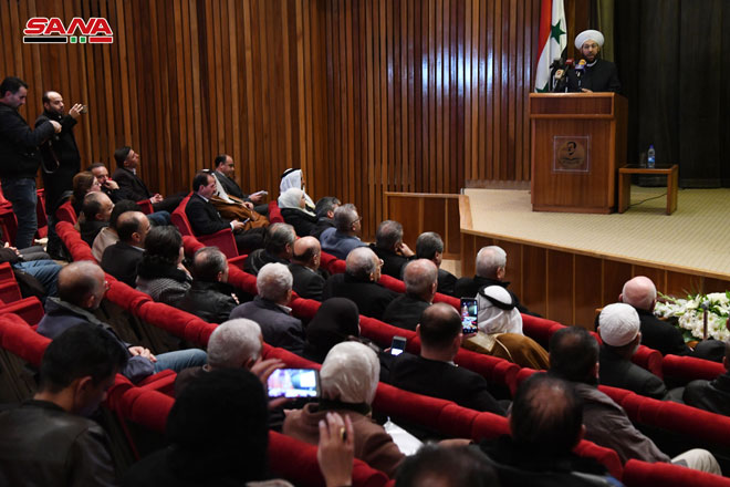 وقال المفتي حسون: “يوم أرى ابن سورية عز الدين القسام يستشهد في فلسطين والراحل كبوجي يسجن في القدس أقول للأمة العربية والإسلامية والإنسانية هذه هي سورية التي لم ولن ترضى بتقسيم الأمة العربية”.