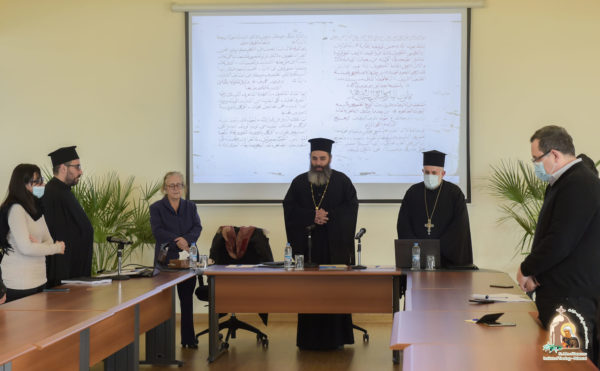 تمّت يوم الخميس 3 آذار الساعة 3:30 بعد الظّهر مناقشة رسالة لنيل شهادة ماستر في اللاهوت عنوانها: “تحقيق المخطوط رقم bala00099 (البلمند) بعنوان: قوانين لمادة الوبا المبيد”، أعدّها الأب كوارتُس الأبيض بإشراف الدكتورة سعاد سليم. تألّفت لجنة التحكيم من قدس الأرشمندريت يعقوب خليل عميد المعهد وقدس المتقدّم في الكهنة الأب بورفيريوس جرجي والأستاذة المشرفة. حضر الجلسة عدد من الأساتذة والطلاب والأقرباء. وبعد المناقشة حصل الأب كوارتُس على درجة ممتاز بعلامة ٩٠