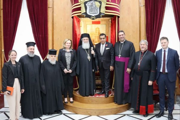وزير بريطاني يزور غبطة البطريرك ثيوفيلوس الثالث في ظل الحرب على غزة