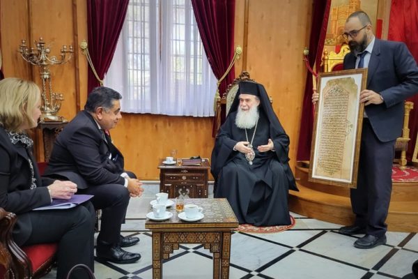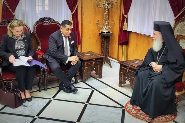 وزير بريطاني يزور غبطة البطريرك ثيوفيلوس الثالث في ظل الحرب على غزة