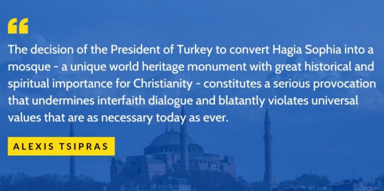 ალექსის ციპრასი – ერდოღანის მიერ აია სოფიას მეჩეთად გამოცხადება სერიოზული პროვოკაციაა, რომელიც აკნინებს რელიგიებს შორის დიალოგს