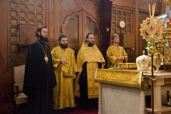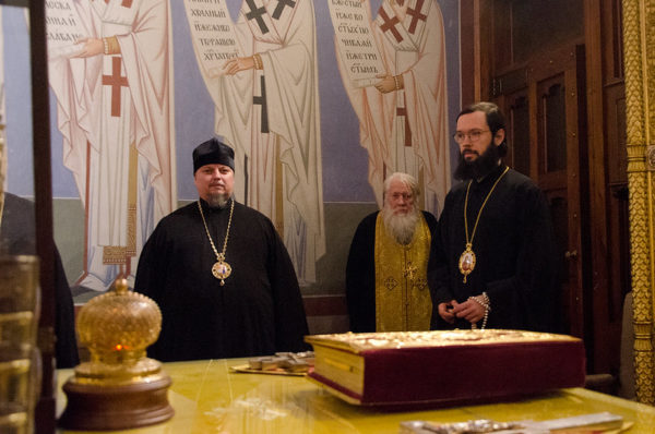 მღვდელთმთავრებს თანამსახურება გაუწიეს დეკანოზმა ვლადიმერ ტიშჩუკმა, დეკანოზმა რადოსლავ რისტიჩმა, მღვდელმა ვიაჩესლავ შიბანოვმა, მღვდელმა გეორგი რიაშკომ, დიაკვნებმა ბოიან ნედელკოვიჩმა და ნიკოლოზ მარკოვიჩმა, ასევე სტუმარმა სასულიერო პირებმა. საკურთხეველში ლოცულობდა არქიმანდრიტი გიორგი (ვოსტრელი).