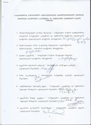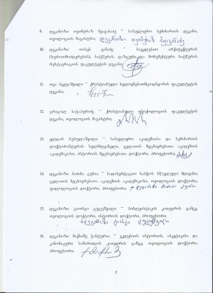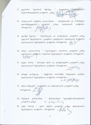 გ) „სამეცნიერო საბჭოს რამდენიმე წევრმა პირადად შემატყობინა, რომ რექტორისაგან ამორჩეული რამდენიმე დოქტორანტი, ტელეფონით უკავშირდებოდა საბჭოს წევრებს. ზოგიერთ მათგანს ტელეფონშივე უკითხავდნენ მათ ზურგსუკან შედგენილ ახალ საბრალდებო ტექსტს და რექტორის სახელით მათგან დაჟინებით მოითხოვდნენ ფორმალურ თანხმობას“.