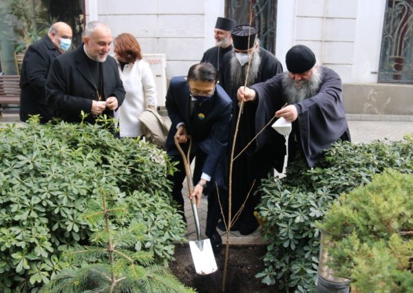 იაპონიის ელჩმა და საქართველოს მართლმადიდებელი ეკლესიის მღვდელმთავრებმა საქართველოს საპატრიარქოს ეზოში იაპონიის სიმბოლო, – საკურას ნერგები დარგეს