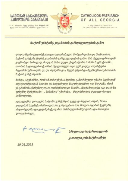 აღვავლენთ ლოცვებს ბატონი ვახტანგის უკვდავი სულისთვის, რათა უფალმან სავანესა მართალთასა განუსვენოს მას, ხოლო ოჯახის წევრებს, ახლობლებსა და გულშემატკივართ მიჰმადლოს მშვიდობა და მისთვის ლოცვის ძალა“,- აღნიშნულია ილია მეორის სამძიმრის წერილში.
