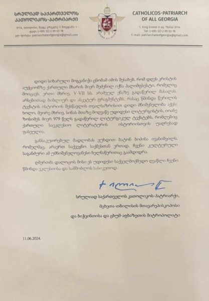 ღმერთმა დალოცოს მისი ეს უდიდესი საქველმოქმედო ღვაწლი ჩვენი წმინდა ეკლესიისა და სამშობლოს სასიკეთოდ.