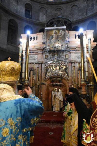 მაცხოვრის საფლავზე საღმრთო ლიტურგიას გაუძღვა მისი ღვთაებრივი უნეტარესობა იერუსალიმისა და სრულიად პალესტინის პატრიარქი თეოფილე მესამე.