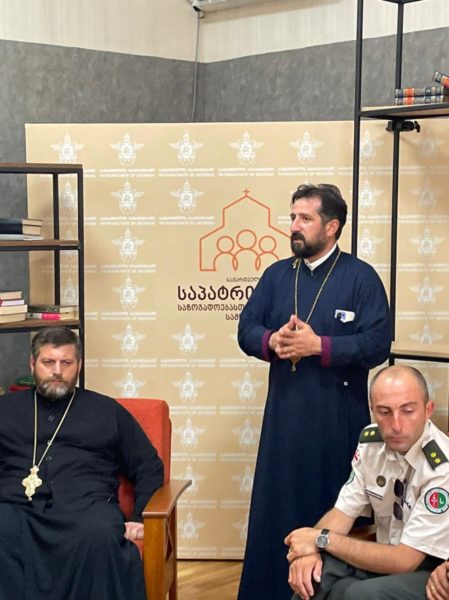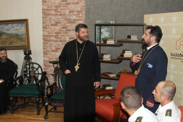 სტუმრებს უმასპინძლეს საპატრიარქოს საზოგადოებასთან ურთიერთობის სამსახურის თანამშრომლებმა – სამსახურის ხელმძღვანელის მოადგილემ, დეკანოზმა გურამ ჭარელაშვილმა და დეკანოზმა იაკობ მახნიაშვილმა.