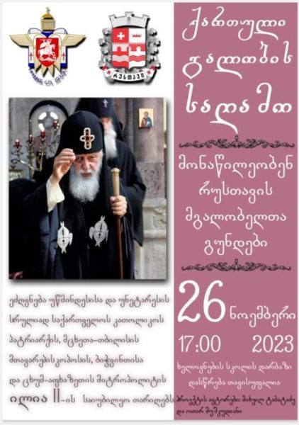 21/11/2023 21/11/2023 საქართველოს საპატრიარქოს საზოგადოებასთან ურთიერთობის სამსახურისა და რუსთავის მერიის მხარდაჭერით ქალაქ რუსთავში ჩატარდება ქართული გალობის საღამო, რომელშიც მონაწილეობას მიიღებენ რუსთავის ტაძრების მგალობელთა გუნდები. ღონისძიება მიეძღვნება უწმინდესისა და უნეტარესის, ილია II-ის საიუბილეო თარიღებსა და მის განსაკუთრებულ როლს გალობის აღორძინების საქმეში. მისამართი: ქალაქი რუსთავი, ილია ჭავჭავაძის 4. ხელოვნების სკოლის დარბაზი. თარიღი: 26 ნოემბერი, 17:00 სთ. საქართველოს საპატრიარქოს საზოგადოებასთან...